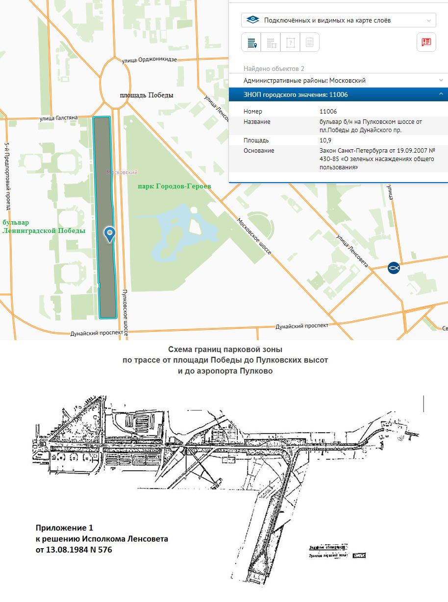 Бульвару, проходящему на Пулковском шоссе от площади Победы до Дунайского проспекта, присвоено название бульвар Ленинградской Победы. Он идет напротив парка Городов-Героев. По изначальному замыслу, изложенному в решении Ленгорисполкома от 13.08.1984 № 576 «О создании парковой зоны по трассе от площади Победы до Пулковских высот и аэропорта Пулково», предполагалось включить в территорию парковой зоны, посвященной истории и героической защите Ленинграда в годы Великой Отечественной войны, строящийся парк Городов-Героев, заложенную памятную рощу - 280 лет Ленинграду, памятную рощу из 900 дубов - символ мужества и стойкости ленинградцев в суровые годы блокады, а также земли, примыкающие к обеим сторонам Пулковского шоссе и дороге на аэропорт шириной в среднем 50 метров, с целью их последующего благоустройства и озеленения по единому архитектурно-художественному замыслу". В эту территорию входил и нынешний бульвар Ленинградской Победы.
