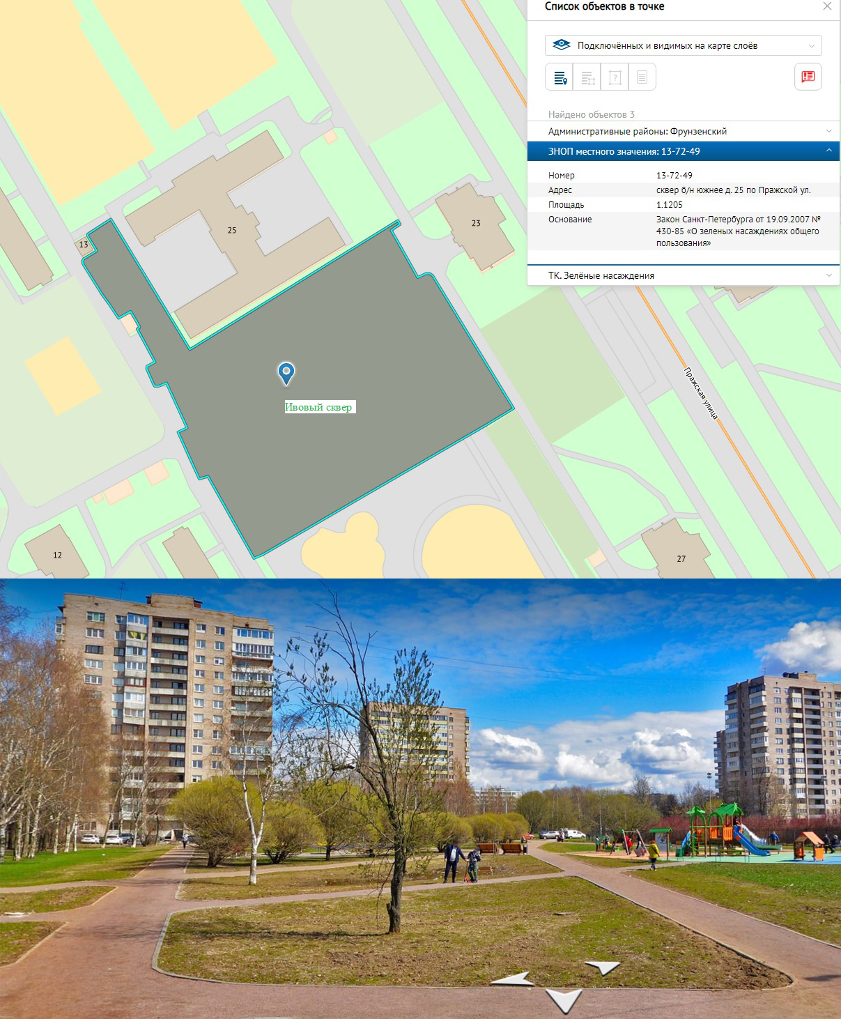 Также во Фрунзенском районе, южнее дома № 25 по Пражской улице, наименован Ивовый сквер. Это название тоже присвоено по просьбе местных жителей и связано с тем, что в сквере растут серебристые ивы.