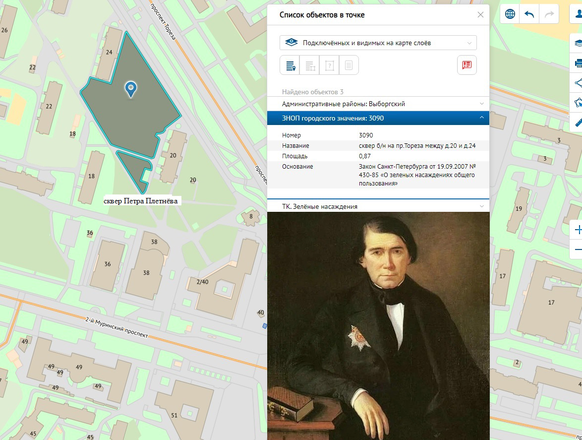 На другой старинной петербургской окраине, в Лесном, появился сквер Петра Плетнёва. Он назван в честь Петра Александровича Плетнёва (1792-1865), оставившего заметный след в русской словесности. Пётр Плетнёв – уроженец Бежецкого уезда Тверской губернии. Он окончил Главный педагогический институт, работал учителем словесности, в том числе в Благородном пансионе. С 1828 г. преподавал литературу наследнику российского престола цесаревичу Александру Николаевичу и великим княжнам. С 1832 г. Плетнёв – профессор словесности в Санкт-Петербургском университете, в 1840-1861 гг. - ректор Университета.