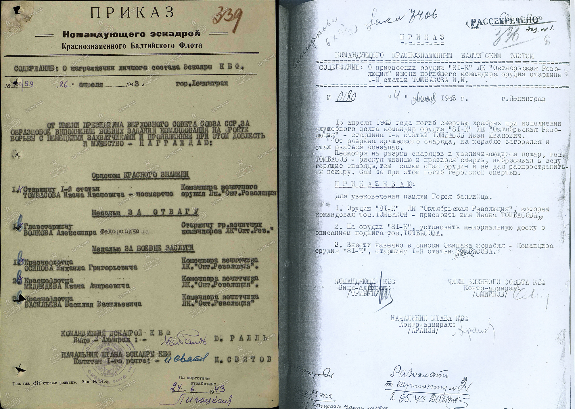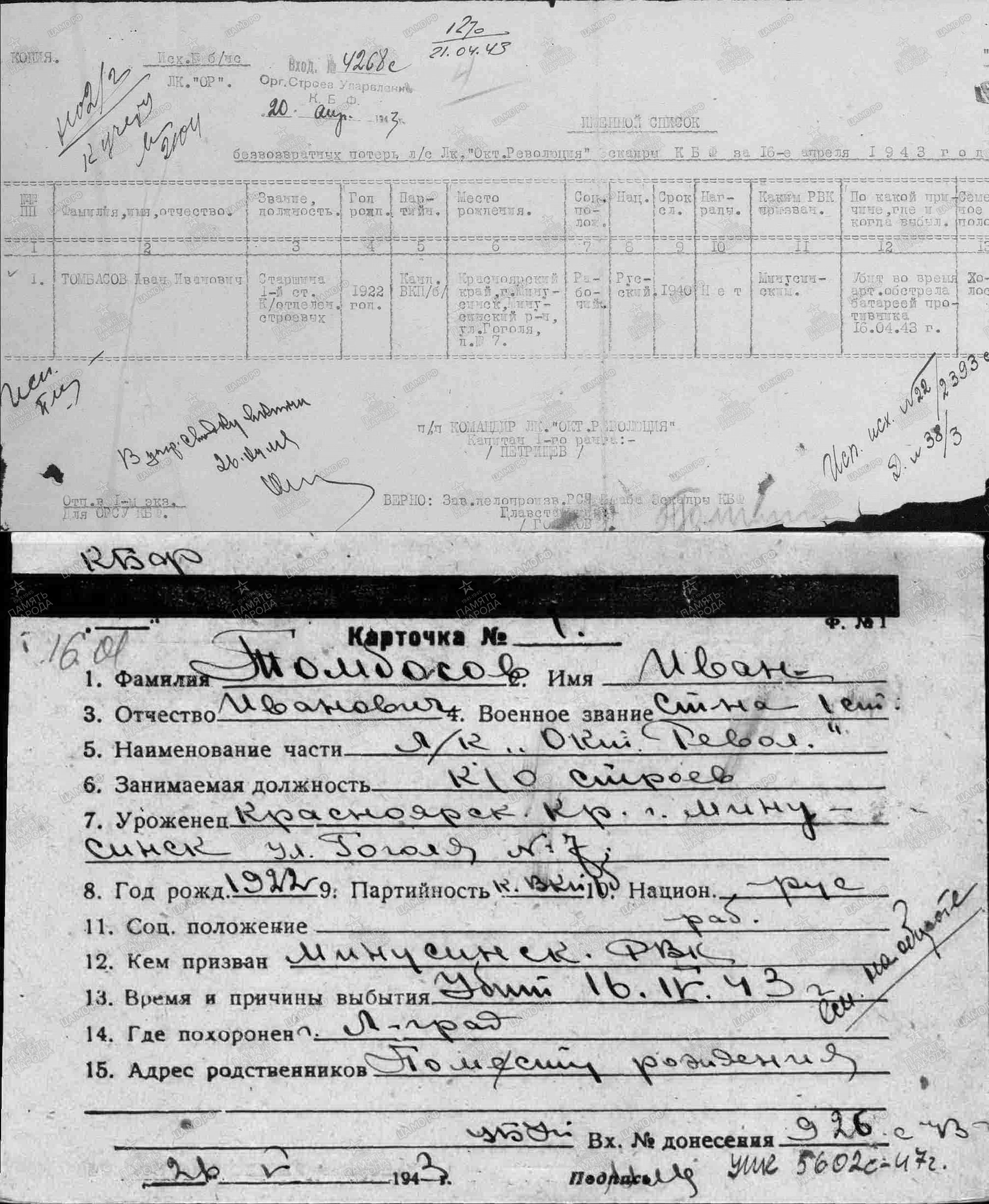 Написание фамилии героя в форме Томбасов подтверждено многочисленными архивными материалами.