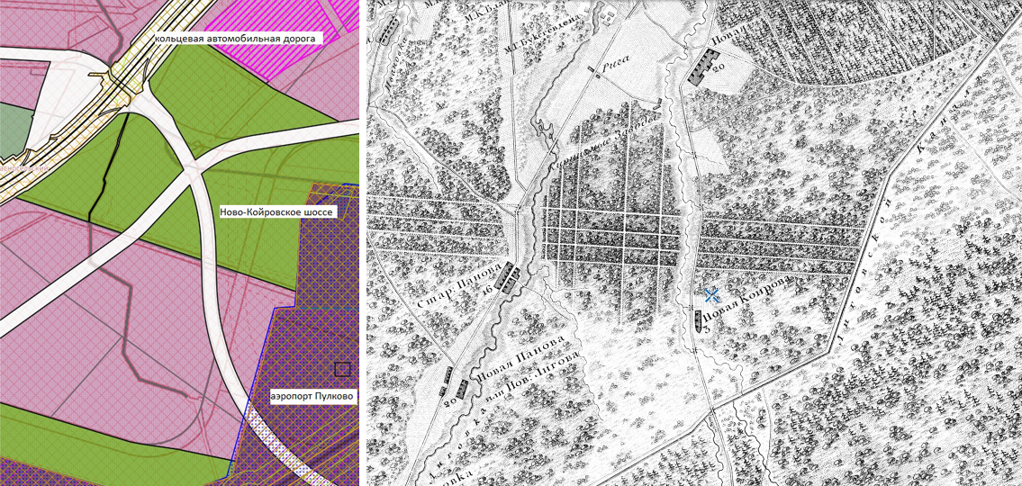 Четвертое название, присвоенное 22 сентября, также связано с исчезнувшим топографическим ориентиром. Недавно построенная дорога, соединяющая КАД и служебный въезд на территорию аэропорта Пулково, теперь называется Ново-Койровское шоссе. Оно проходит близ бывшей деревни Новое Койрово, существовавшей с начала XIX века. Еще в новгородской переписной книге 1500 г. в этих местах значится деревня Коирово (по ижорски и по-фински "койра" означает "собака"). В XVIII-XIX веке на Пулковских высотах севернее современного Волхонского шоссе возник целый куст "койровских" поселений: Большое (Чухонское, затем Финское) Койрово, Малое (Русское) Койрово, Верхнее Койрово, Нижнее Койрово... Все они обозначались также и как Коерово или Койерово, и почти все, в том числе и Новое Койрово, были разрушены во время Великой Отечественной войны. Дольше всех продержалось Финское Койрово (на его месте сейчас промзона на областной части Волхонского шоссе), и сохранили свои имена две речки - Большая и Малая Койровка.