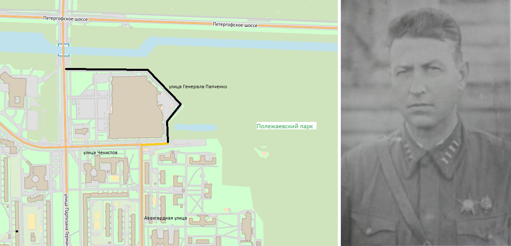 22 сентября 2022 года проезду, отделяющему Полежаевский парк от застройки по улице Чекистов и улице Партизана Германа, присвоено название улица Генерала Папченко. Оно дано в честь командира 21-й дивизии НКВД, защищавшей Урицкий рубеж в сентябре 1941 г. Эта улица проходит практически по бывшей линии фронта.